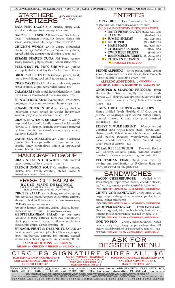 Welcome to Circles Waterfront at Lands End Marina, a hidden gem nestled in the scenic Apollo Beach, Florida. This vibrant bar and seafood restaurant offers a unique dining experience where fresh ingredients meet a relaxed waterfront atmosphere. Whether you’re seeking a casual lunch, a delightful dinner, or a night out with friends, Circles has something special for everyone.